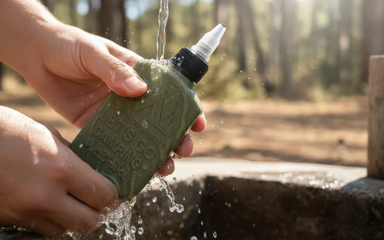 Det er super nemt at genopfylde denne flaske igen og igen. Efter mad over bål er det en hurtig skylning, og den er klar til næste tur.