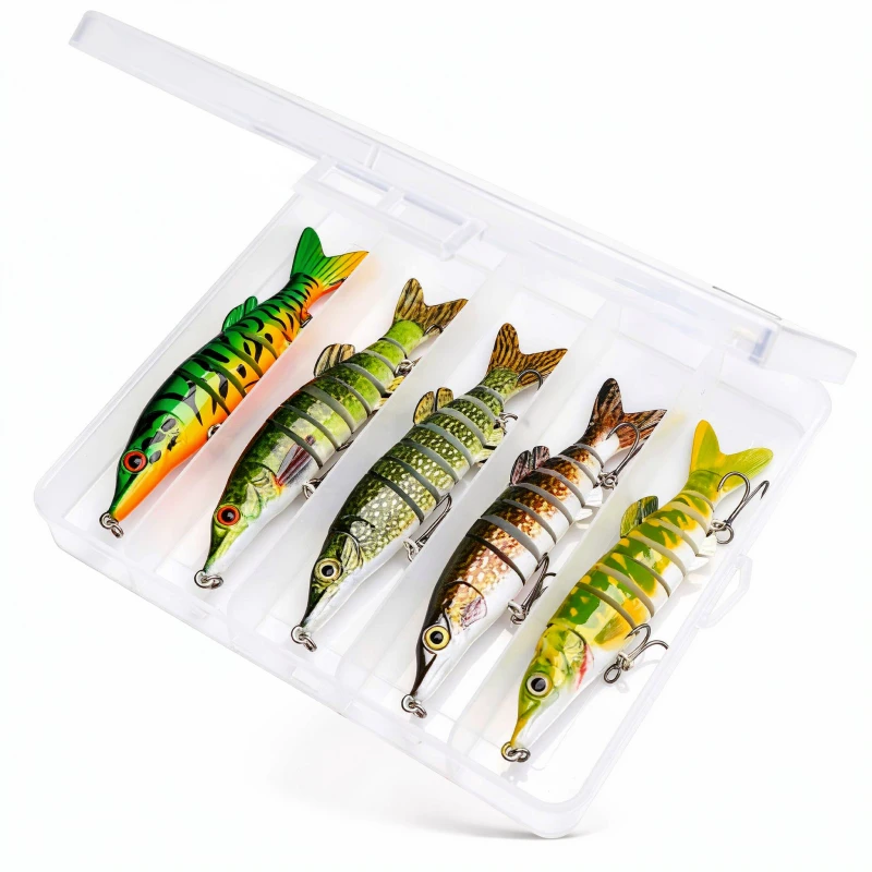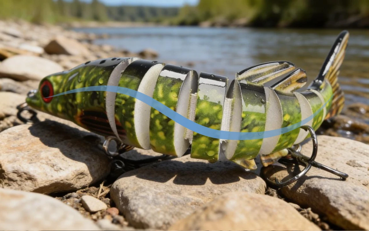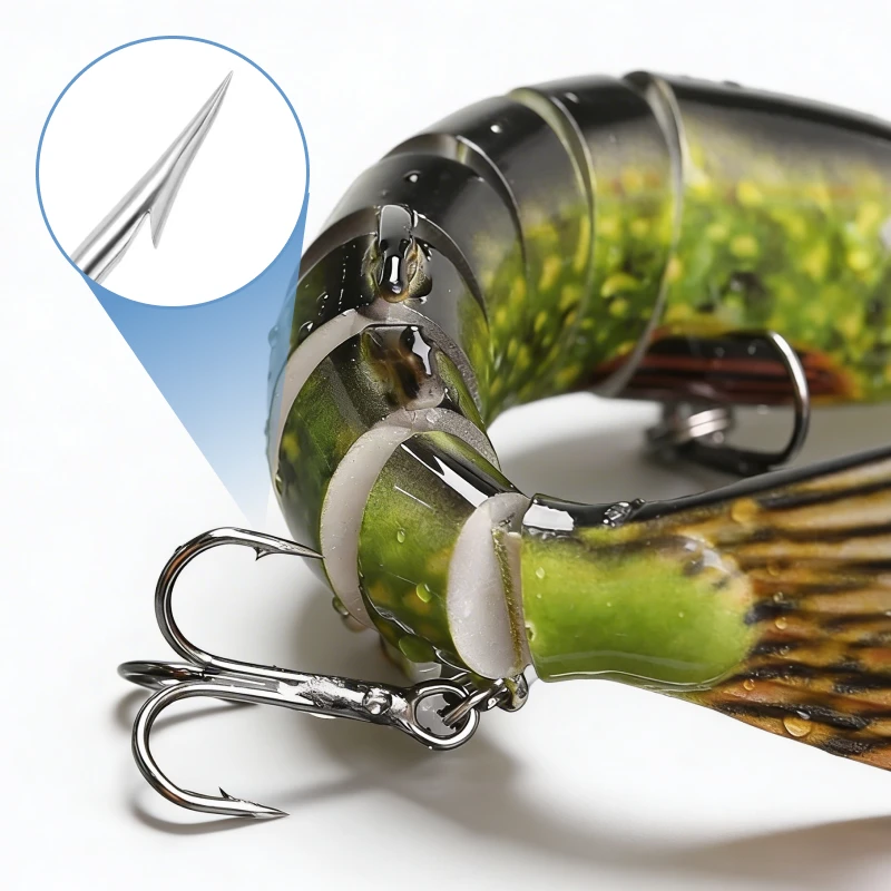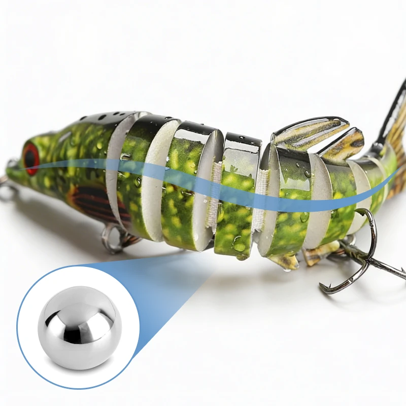 Otte fleksible sektioner hjælper denne agn med at svømme som et rigtigt bytte. Hvert ryk frister rovfisk og øger dine resultater.