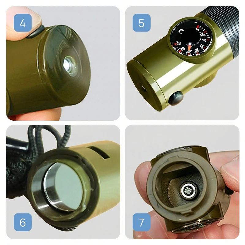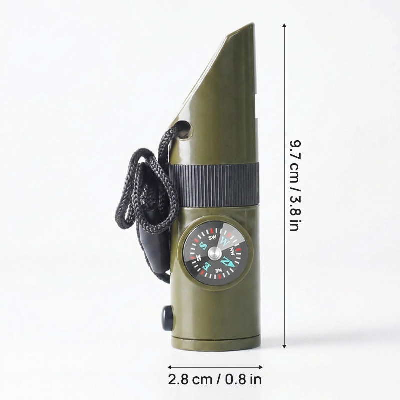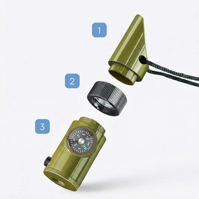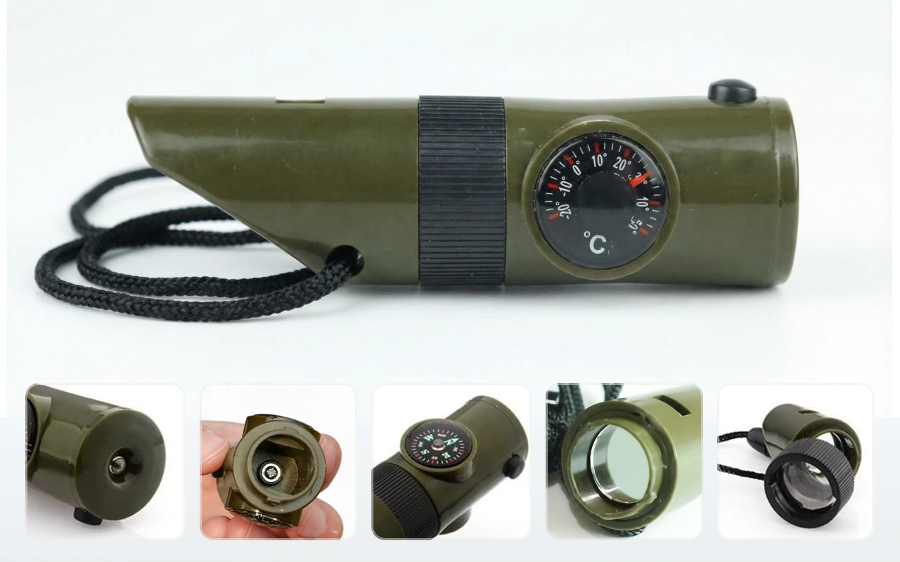 Jeg er ny til camping, og denne fløjte får mig til at føle mig forberedt. Kompas, spejl og lys dækker de fleste bekymringer uden at fylde lommerne med grej.