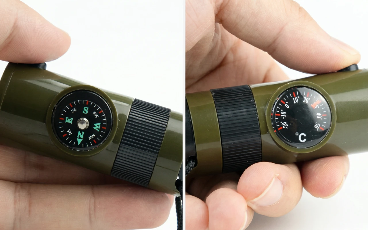 Købte fløjten til min teenagesøns fisketure. Han bruger temperaturmåleren til at tjekke morgenkulden og den høje lyd til at få kontakt med vennerne på den anden side af søen.