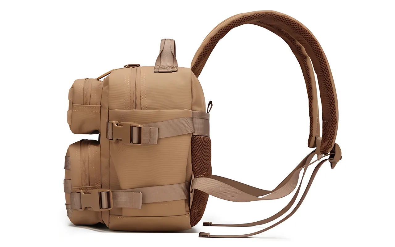 Eventyr føles lettere, når hver ting har sin sikre plads. Threo 9L Tactical giver plads til dine daglige behov, uanset om du vandrer, leger eller rejser. Stærkt stof beskytter indholdet mod hårdt vejr.