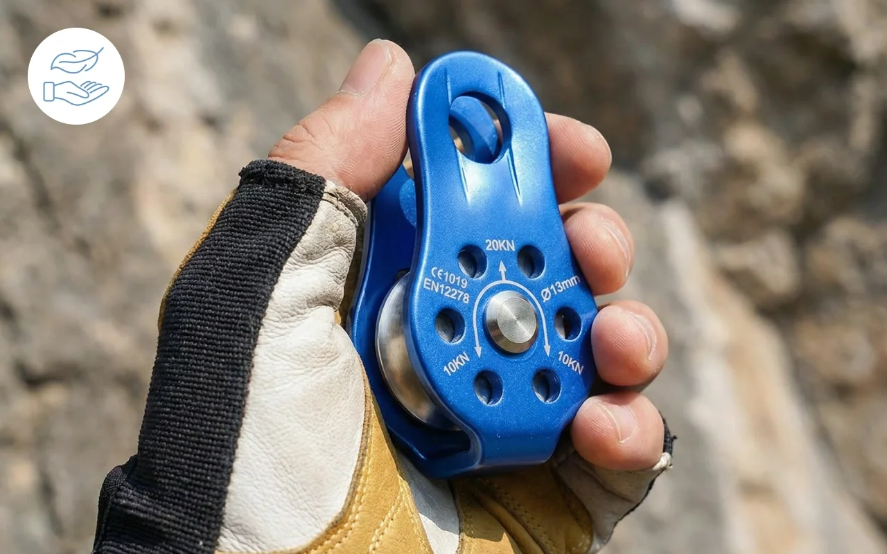 Glathjulet skive lader rebet glide blidt hver gang. Reducerer friktionen for hurtigere, sikrere fremgang på stejle vægge.