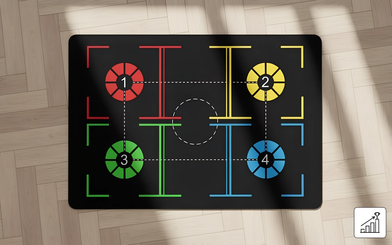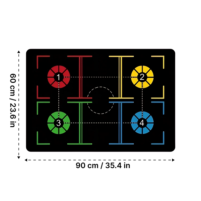 Threo-måttens tydelige zoner hjælper med at guide dine fodbevægelser hver gang. Dine færdigheder forbedres hurtigere, når du øver målrettede øvelser dagligt.