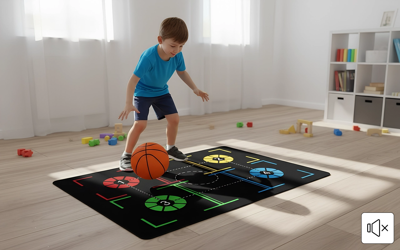 Jeg elsker virkelig at drible på denne måtte indendørs. Den glider slet ikke, og min familie bliver ikke irriteret over høje boldstød.