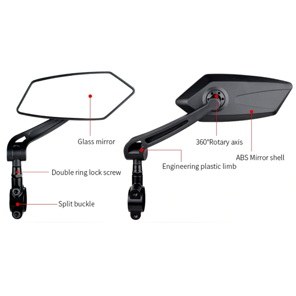 Vores cykelbakspejle anvender højtopløselige glaslinser, en base i højstyrke aluminium legering og en holdbar ramme. Alle materialer er meget stærke og svære at ødelægge, uanset hvor hurtigt du foretrækker at cykle. Derudover er vores cykelbakspejl monteret på styret fuldt roterbart og giver fuldt udsyn bagud. Det kan vinkles når som helst for at se, hvad der kommer fra forskellige retninger. Desuden giver de lange arme på cykelspejlene optimal dækning for at forbedre dit perifere syn. Den bøjelig stangdesign vil ikke hoppe, selv når du kører på ujævne veje.