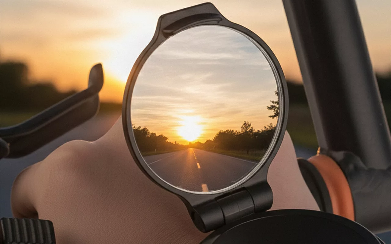 Den buede overflade giver et bredere udsyn bagud. Den mindsker blinde vinkler under cyklingen, så du lettere ser biler, der nærmer sig.