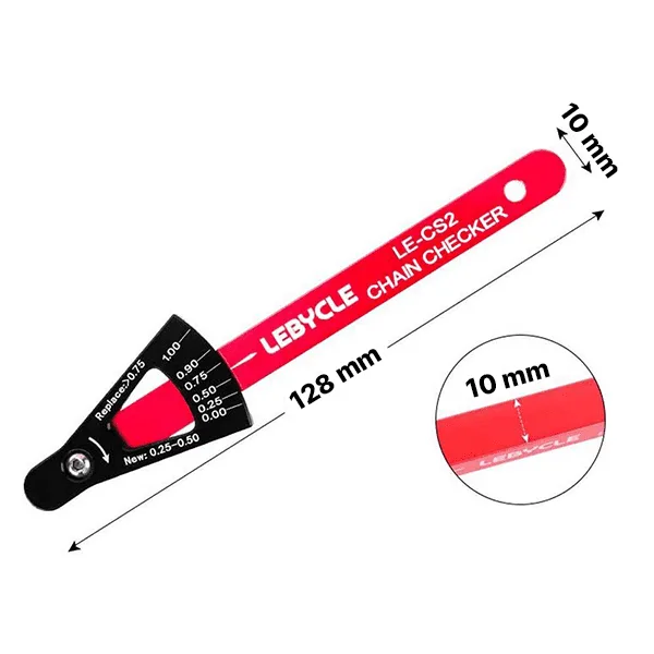 Threo Cykel Slidindikator måler nøjagtigt strækningen på cykelkæden og har en slidindikator, der hurtigt viser, hvornår den skal udskiftes. Fremstillet af holdbare materialer, der passer til både racercykler og mountainbikes, er vores kompakte værktøj et must-have for cykelentusiaster på alle niveauer.