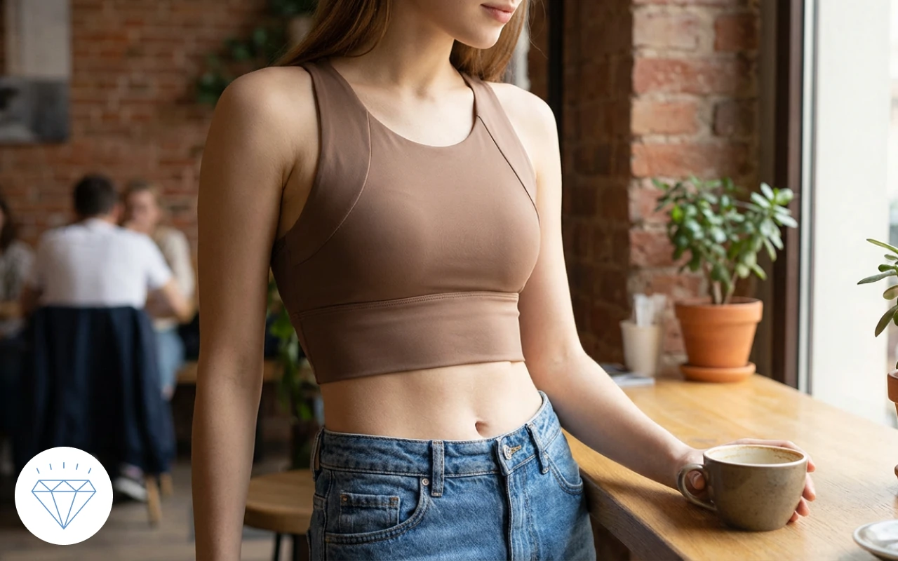 Jeg bruger den til spinning og styrketræning. Den sidder tæt uden at klemme for meget, og stoffet føles blødt mod huden under hele træningen.