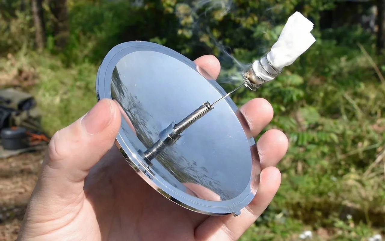 Blev imponeret over, hvor hurtigt jeg fik gang i et bål bare ved hjælp af solen, selv med vind omkring. Praktisk til hurtige pauser udendørs.