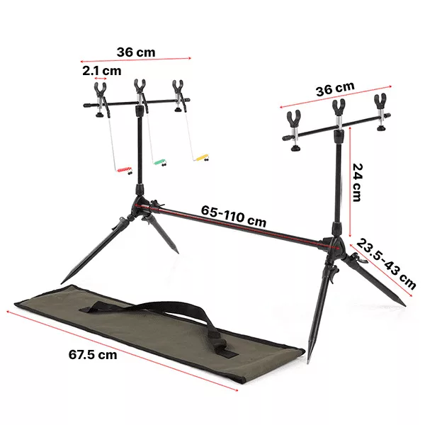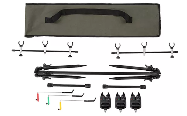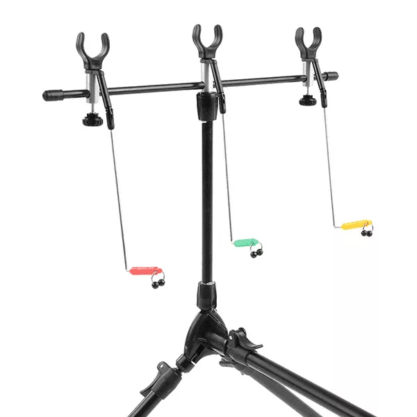 Succes i alle fiskemiljøer. Vores stangpod er kompatibel med bidalarmer og understøtter op til tre stænger med seks hvilepladser og tre swingers.