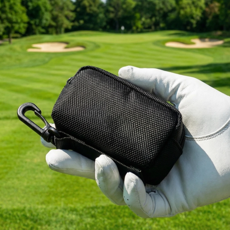 Jeg elsker, hvor nemt det er at tage en golfbold eller tee op af denne pose, mens jeg går på banen. Virkelig praktisk og holder alt tørt, når det regner.