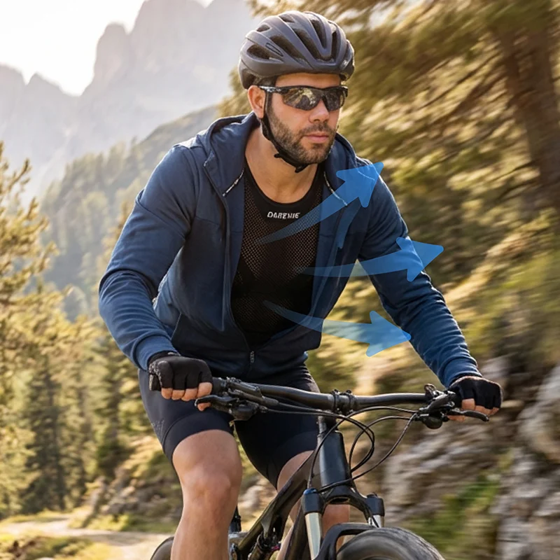 Jeg købte denne til min mand til hans mountainbike-ture. Han kom hjem og sagde, at trøjen forblev let, ingen klistret fornemmelse, og han følte sig køligere hele tiden.