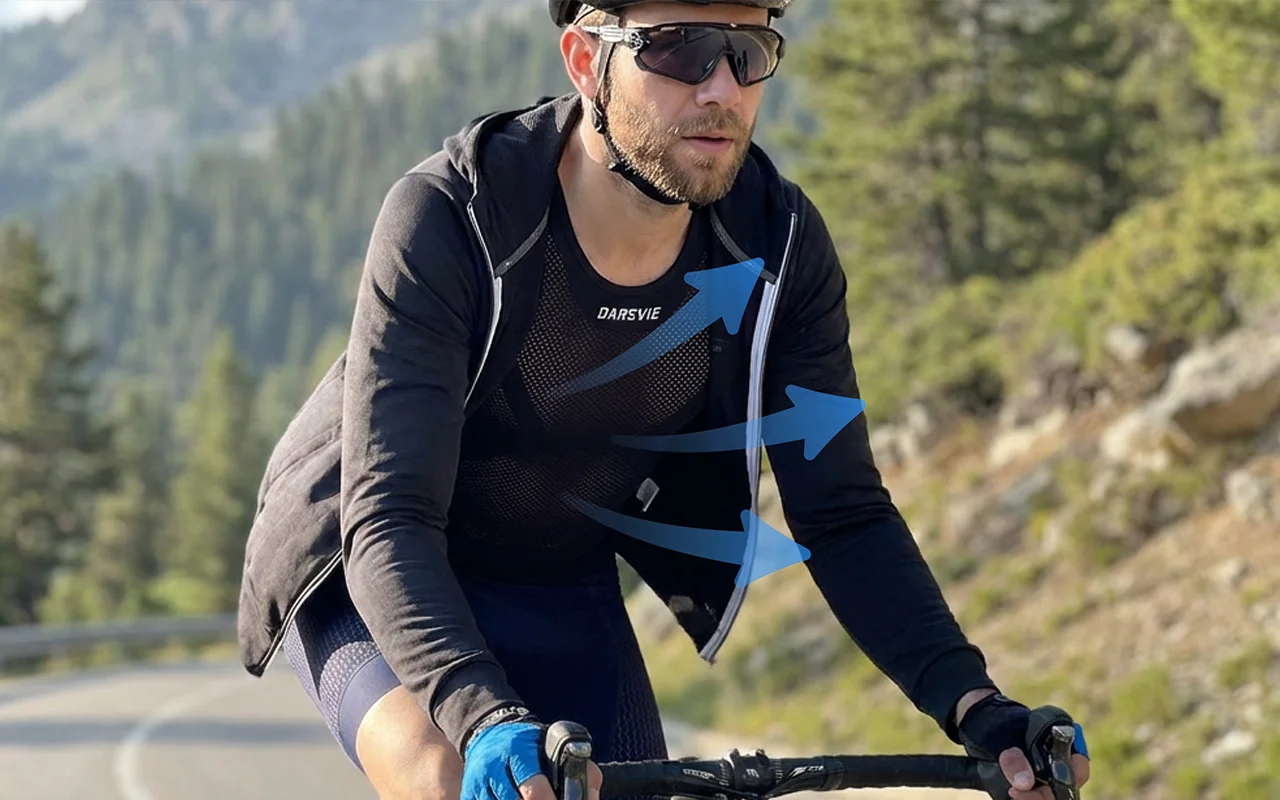 Købte denne til min bror, som cykler hver dag. Han siger, at det ærmeløse snit føles frit, stoffet transporterer sved hurtigt, og pasformen bliver, hvor den skal.
