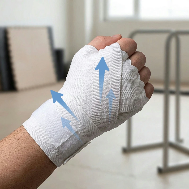 Disse bomuldsbandager får mine skyggeboksnings- og sandsæk-runder til at føles mere sikre. Elastikken er lige tilpas, ikke for stram, og de folder sig ikke sammen under handskerne.