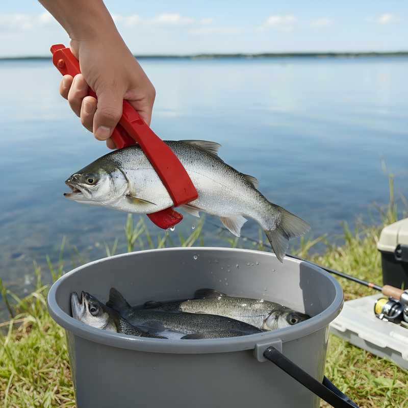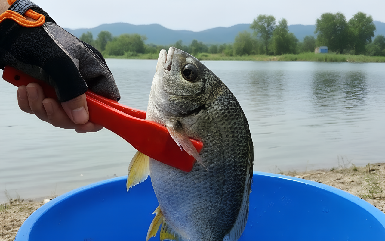 Min lillebror kan håndtere store fisk med denne tang, og den åbner let uden at skade hans fingre eller fisken.