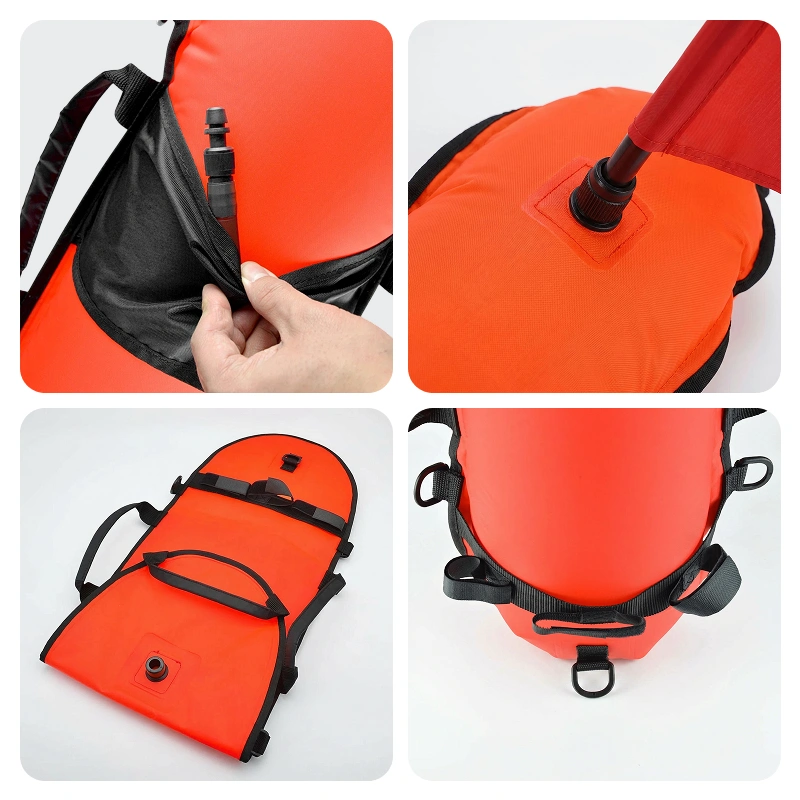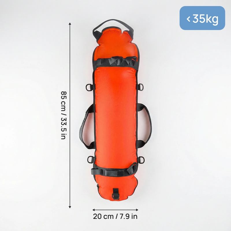 Jeg bruger denne torpedo-bøje på lange snorkelture. Supernem at puste op, behagelig at holde fast i, og håndtagene holder mine finner og netpose godt på plads.