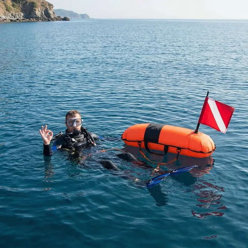 Købte denne bøje til min mands havsvømninger. Den klare farve skiller sig ud selv på overskyede dage og i uroligt vand, så jeg bekymrer mig meget mindre.