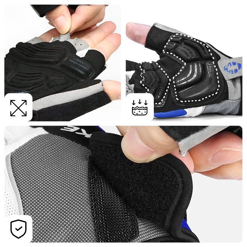 Med hjælp fra velcrolukning ved håndleddet kan du nemt justere handskernes stramhed for at sikre den bedste pasform. Når din tur er slut, gør trækflapperne det nemt og behageligt at tage handskerne af. Det simple, men effektive design er perfekt til langdistancecykling, fitness, bjergbestigning, sejlads, vandreture, kajak og andre udendørs aktiviteter. Disse fingerløse handsker er egnet til sommer, forår og efterår.