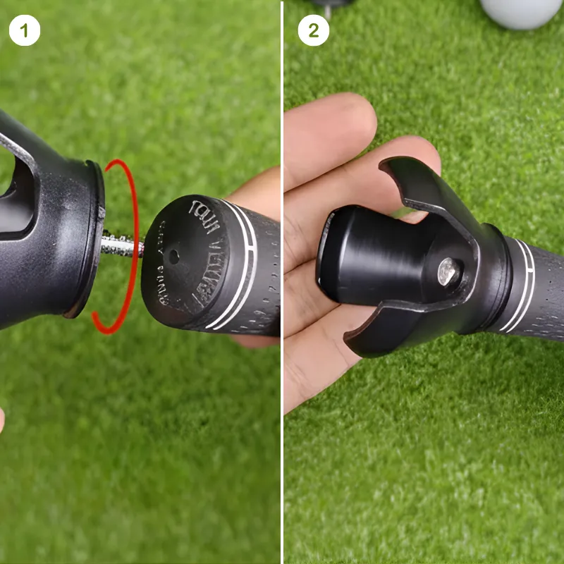 Skru Threo Golf Ball Picker på dit putter-greb på få sekunder. Passer til de fleste grips og sidder fast hele spillet.