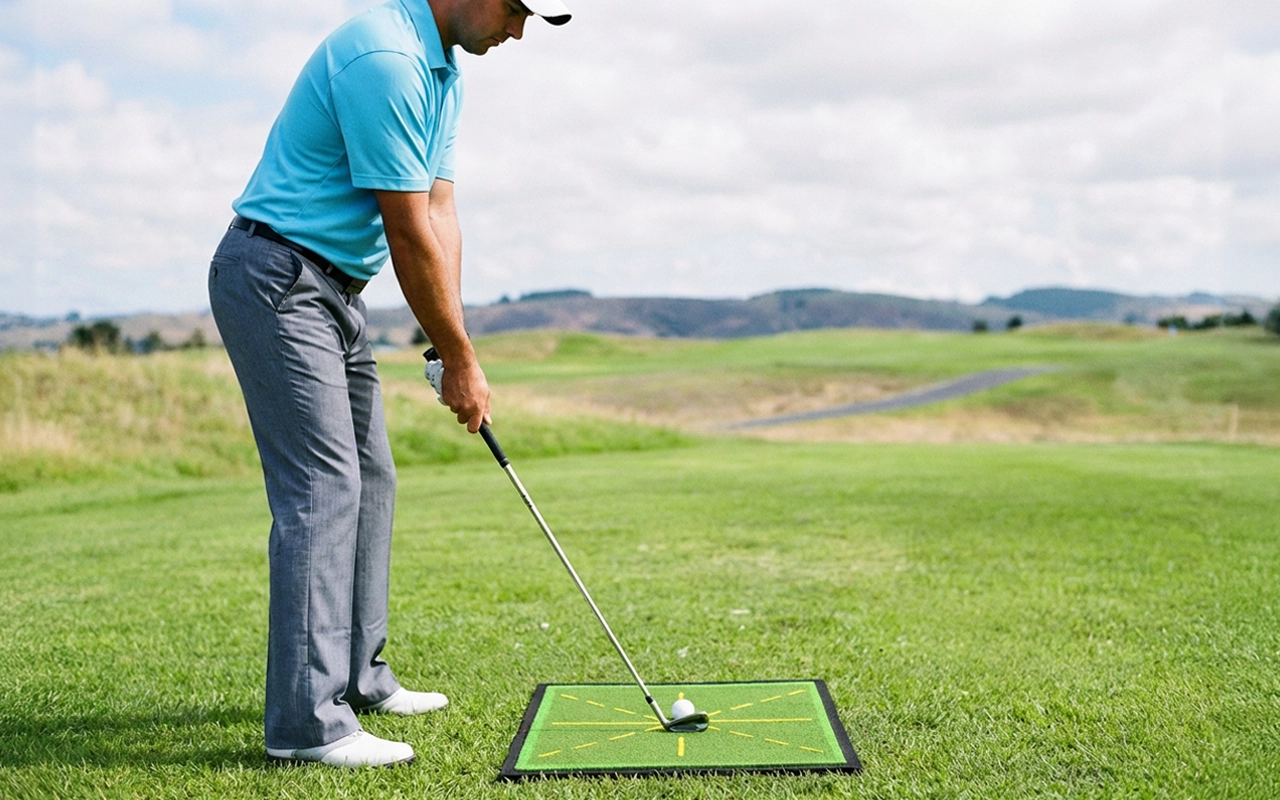Føles som almindeligt græs under køllen. At øve hjemme er nu faktisk nyttigt og ikke bare tidsfordriv.