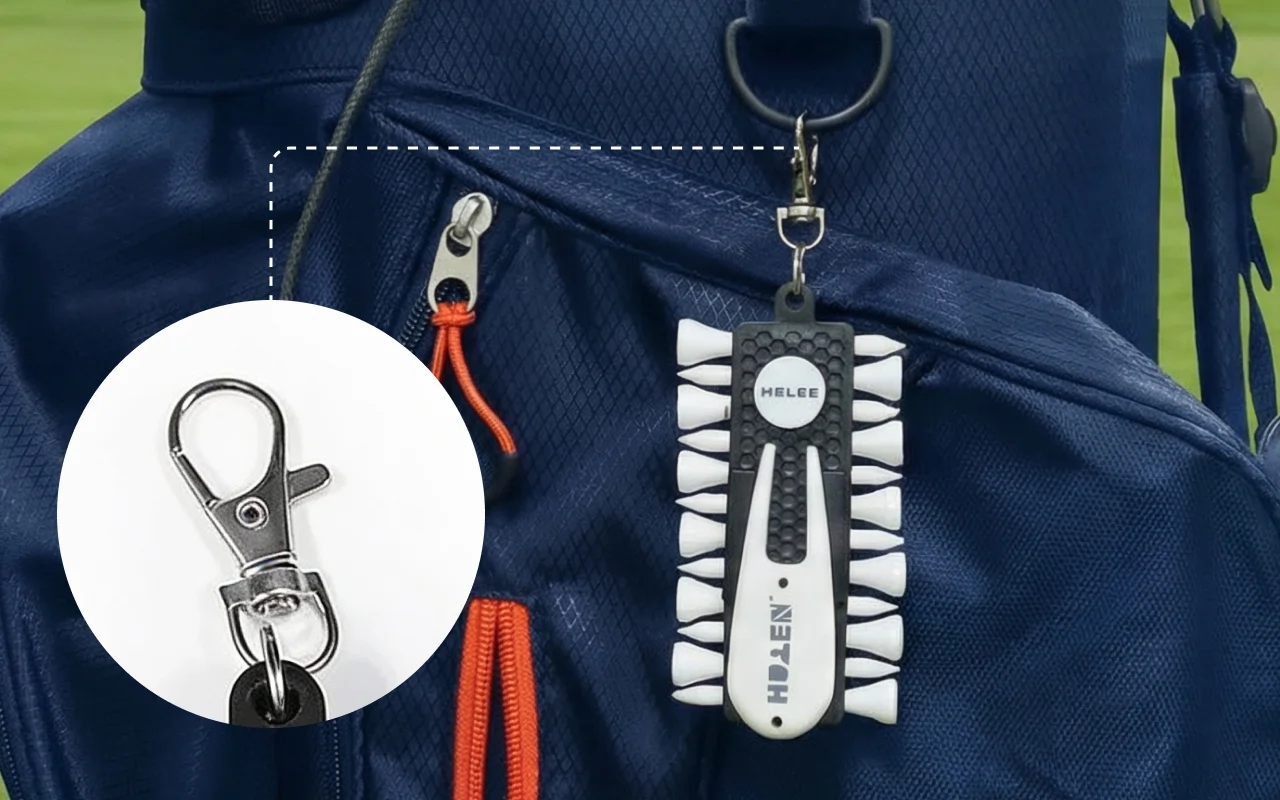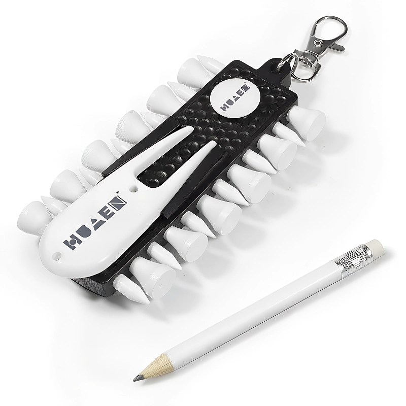 Elsker dette tee-sæt! Det har holdt mit udstyr samlet til hver eneste runde denne sæson. Det er super praktisk at klipse det på min taske, og jeg mister aldrig mine tees længere.