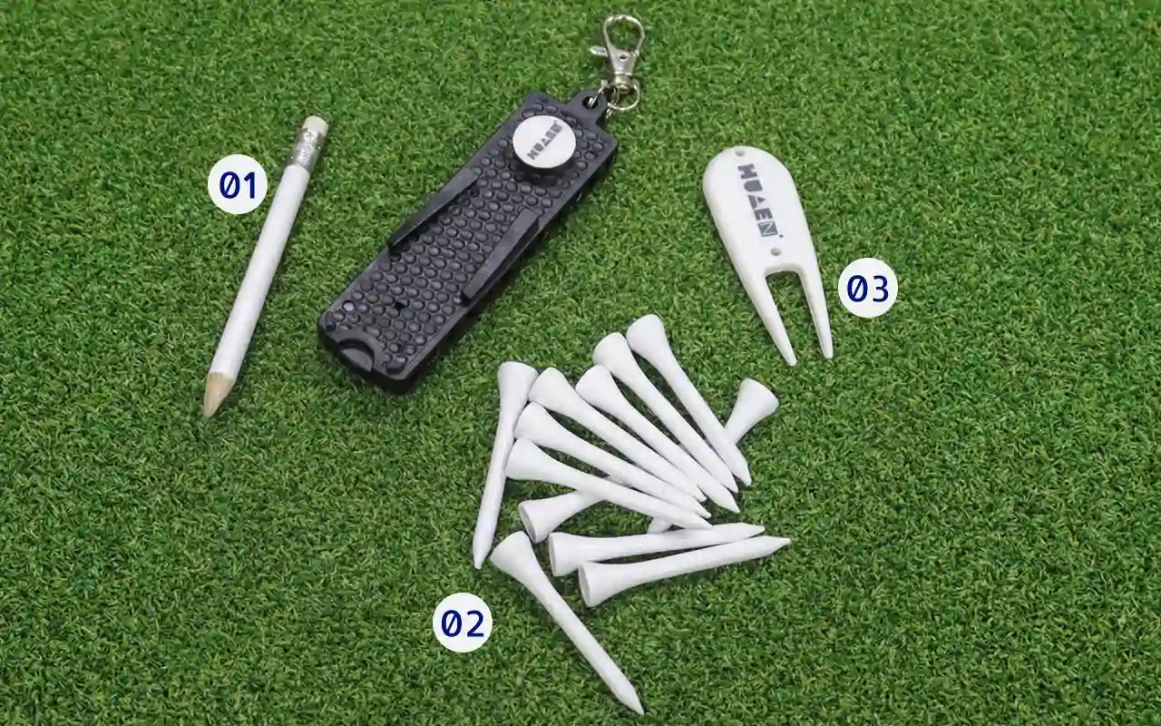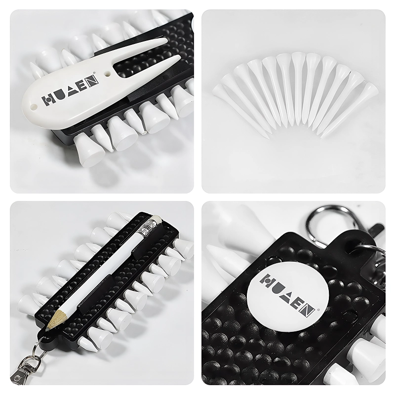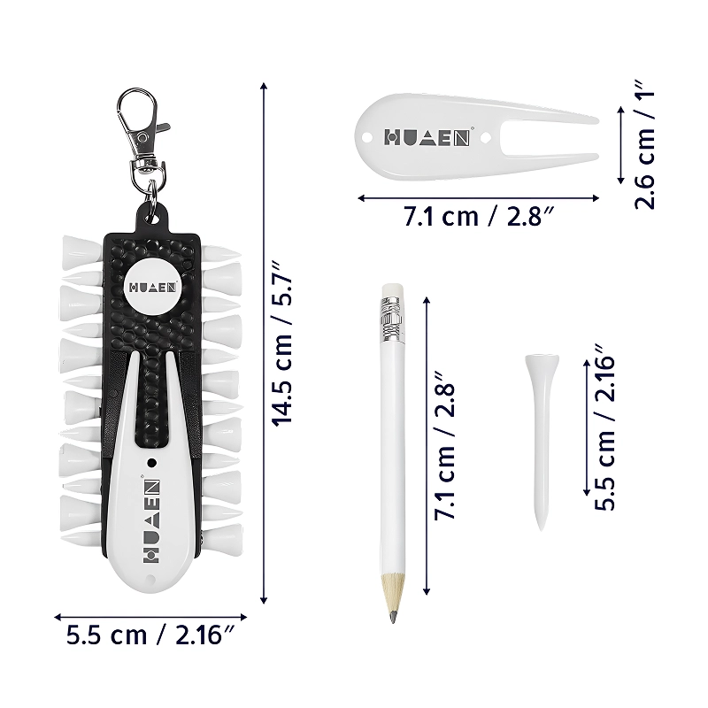Aldrig mere lede efter småting mens du spiller. Threo tee-sættet opbevarer alt i én praktisk holder. Alt samlet betyder ingen spildt tid. Det holdbare og kompakte design gør det nemt at bære med.