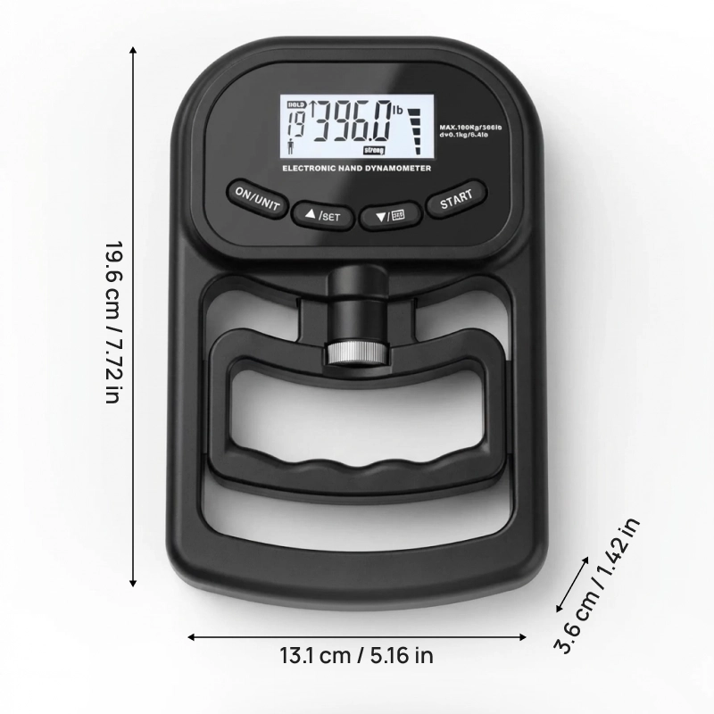 Threo grebdynamometeret gør daglige tjek af håndstyrke enkle. Se klare målinger på en stor skærm uden forvirring. Sammenlign resultater nemt og se forbedringer med det samme.
