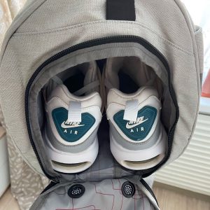 Ruminddelingen holder perfekt mine sko adskilt fra alt andet. Sætter pris på den ekstra plads til mine vandflasker. Meget tilfreds med denne taske.