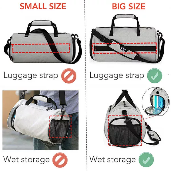 Denne træningspose er lavet af vandafvisende materialer, designet til at absorbere fugt og sved samtidig med at den giver maksimal komfort. Derudover beskytter den mod regnbyger og hjælper med at eliminere eksterne faktorer som vindmodstand. En aftagelig skulderrem gør den nem at bære. Denne højkvalitets træningspose har også en Oxford-rem på bagsiden af store størrelser, så den kan fastgøres til kuffertens trækstang. Den er perfekt til lange rejser, hvis du leder efter en komfortabel rejsemulighed.
