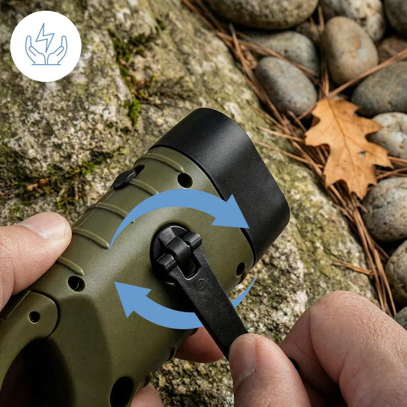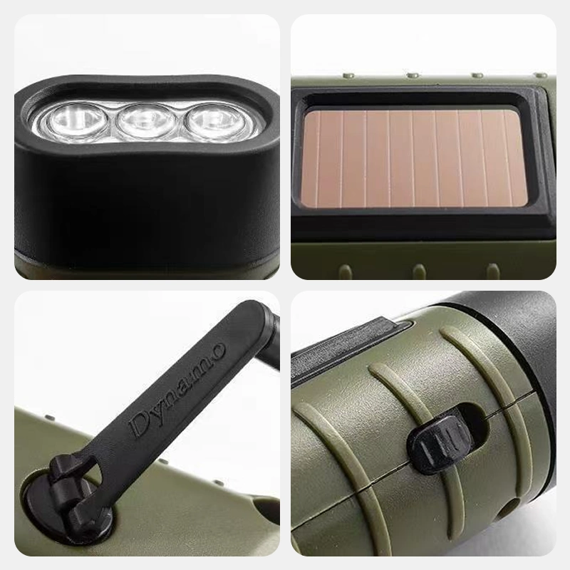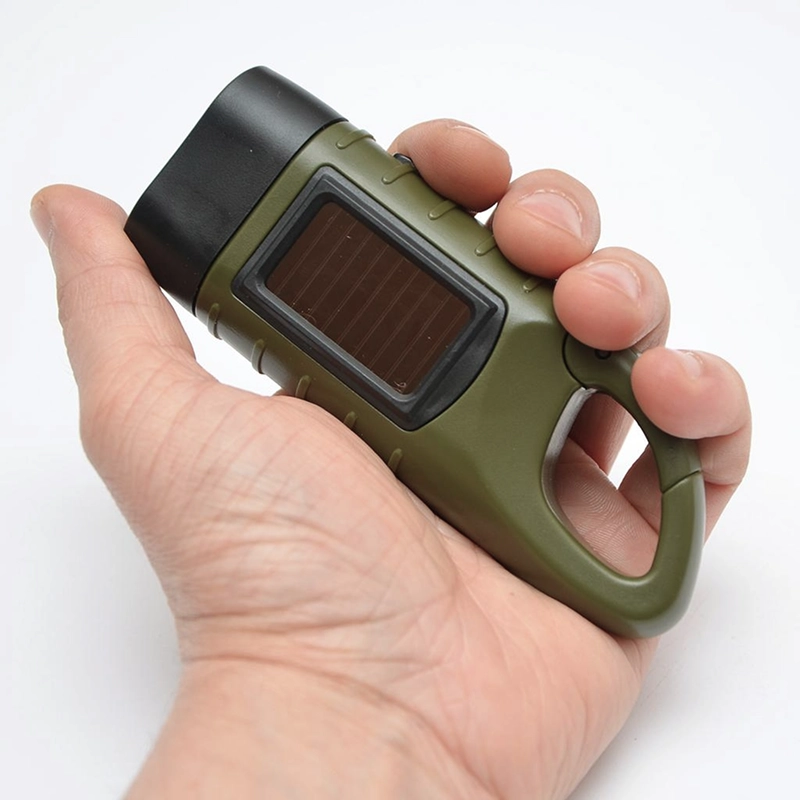 Forsyn Threo-lommelygten med strøm ved hjælp af sollys eller ved at dreje håndsvinget. Ingen netstrøm er nødvendig, så du altid kan skabe øjeblikkeligt lys.