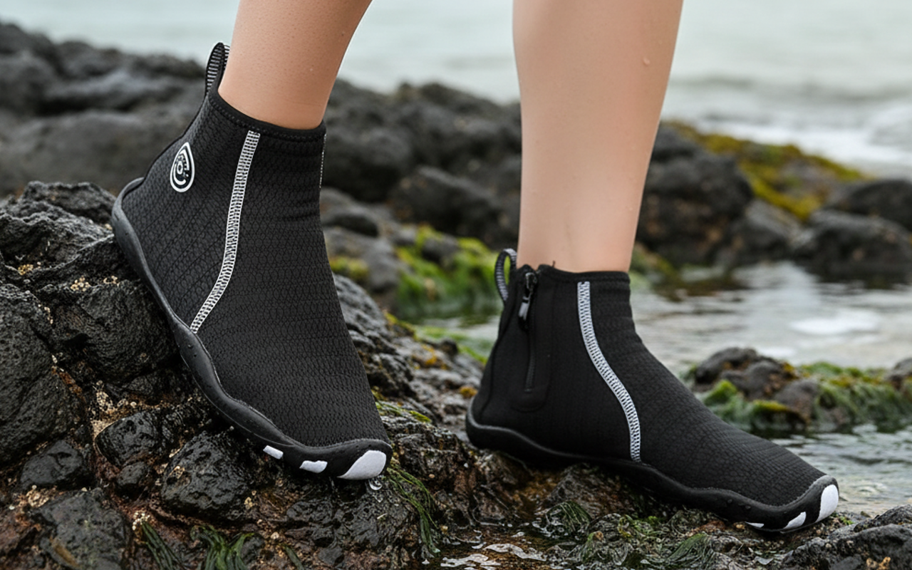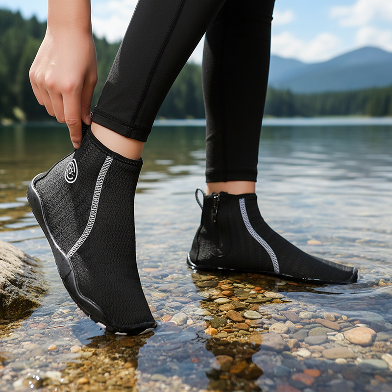 Høje skafter beskytter anklerne mod skarpe sten og varm sand. Holdbare såler mindsker risikoen for at glide, og giver stabil balance på vådt eller ujævnt underlag.
