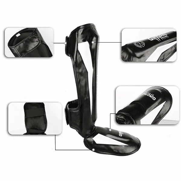 Det justerbare lukkesystem og elastiske bånd sikrer en tæt og behagelig pasform. Vores skinnebeskyttere glider ikke eller flytter sig under træning, hvilket sikrer maksimal beskyttelse.