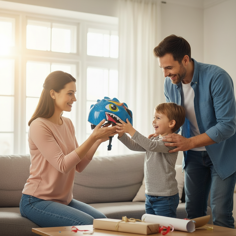 Min søn elsker virkelig sin dino-hjelm! Han har den på hver gang, og de klare farver gør cykelturene endnu mere spændende for ham.