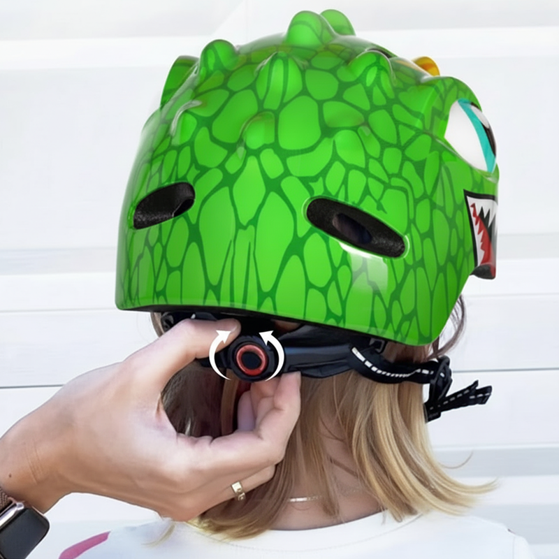 Dinosaur-hjelmen passer perfekt takket være den justerbare rem, og min datter klager aldrig over komforten, selv efter flere timer i parken.
