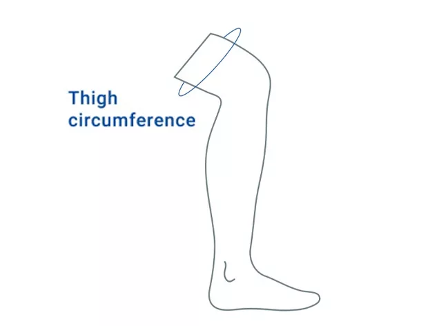 - 2. Vikl målebåndet rundt om dit lår, ca. 10 cm over knæet.