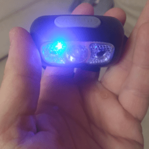 Fantastisk, at jeg ikke skal skifte batterier hele tiden. Den her ting er super let på mit hoved. Lysstyrken er god nok til at gå tur med hunden. Kan anbefales