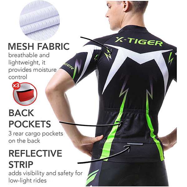 Denne cykeltrøje er et must-have for enhver cyklist! Den er lavet af stof i høj kvalitet for maksimal varmeafledning og giver fremragende åndbarhed. Trøjen lukker kølig luft ind og leder fugt væk fra huden. Den er elastisk, let, blød og sidder perfekt til kroppen.