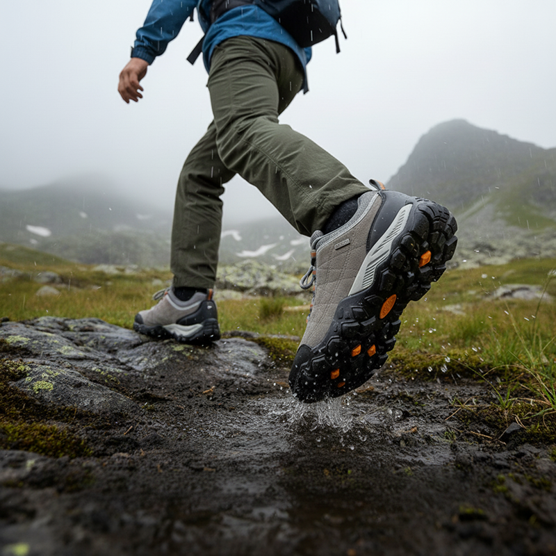 Gummisåler giver et fast greb på våde eller løse underlag. Træd sikkert over sten, mudder eller græs i al slags vejr.