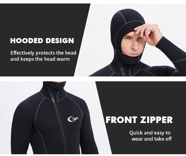Godt kvalitetsmateriale, har aldrig følt mig så varm i koldt vand. Elsker virkelig hættefunktionen—giver fremragende beskyttelse!