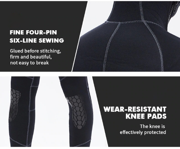 Slidstærke knæpuder beskytter effektivt dine knæ mod skader. En anden funktion ved denne våddragt er, at den beskytter dig mod solskoldning og hudskrammer fra havets liv i dybhavet. Du undgår skader på huden fra vandforurening.