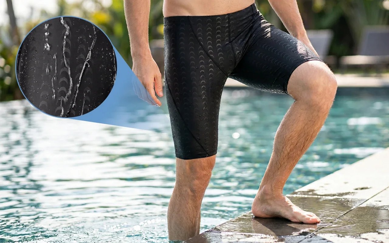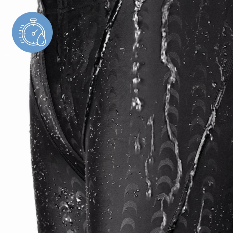 Materialet afviser hurtigt vand, så du slutter tør og glad. Ingen fugtig, tung fornemmelse efter svømning eller træning.