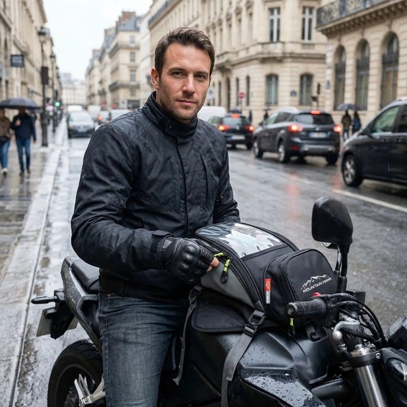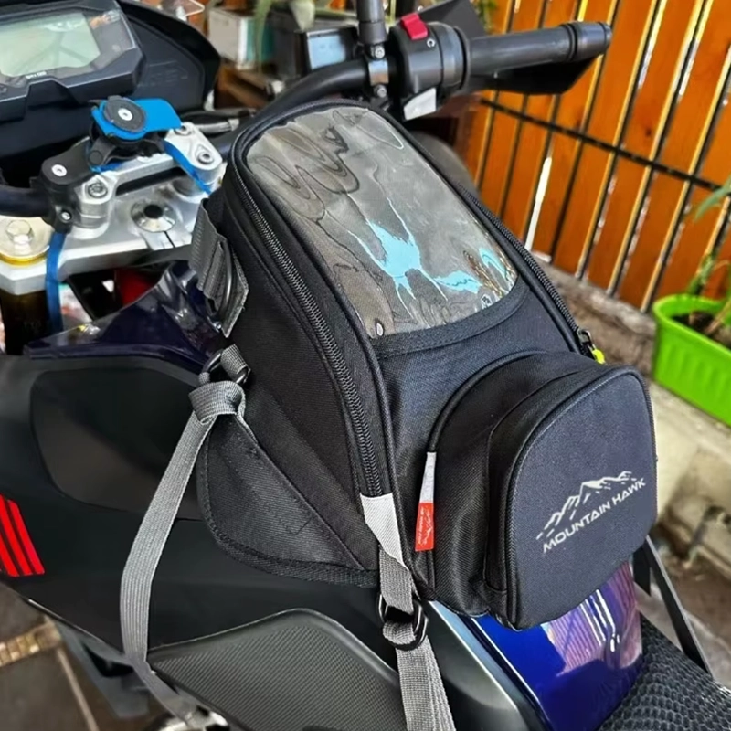Jeg er ny på motorcykel og bliver nervøs for at miste ting. Denne lille taske bliver siddende og holder min telefon og garageåbner lige til at få fat i ved lyskryds.