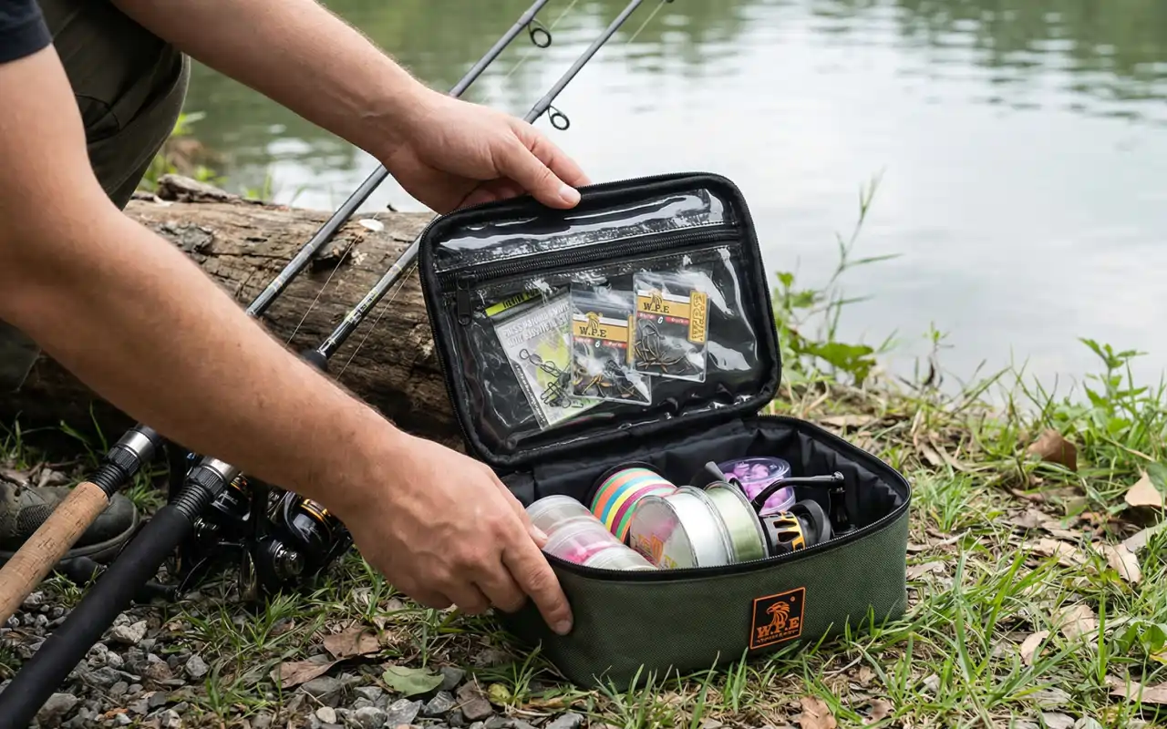 Denne fisketaske rummer agnbokse, lodder og ekstra line med plads til overs. Jeg kan lide, at den er nem at tørre af efter mudrede dage ved bredden og stadig ser ny ud.