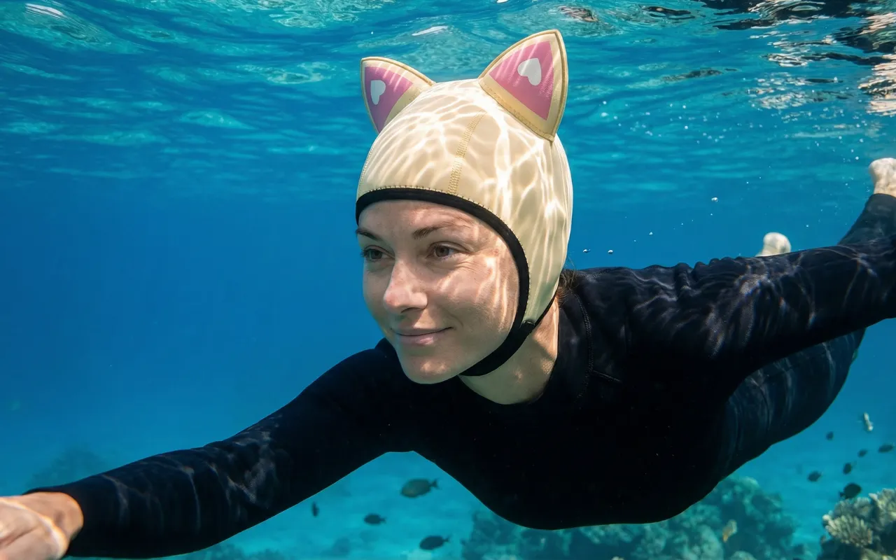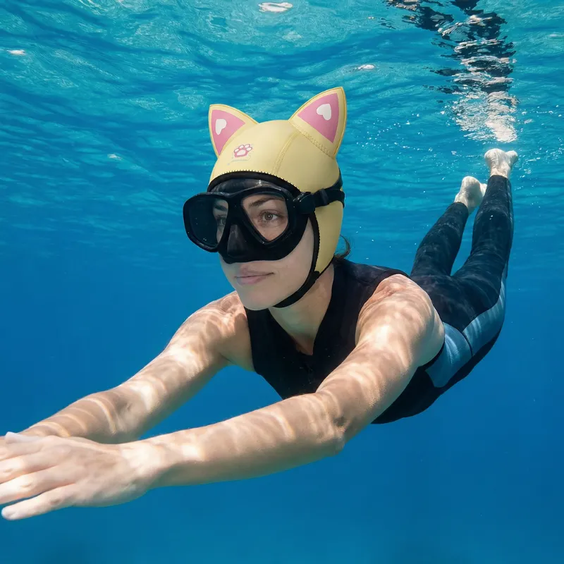 Nyd sjov og sikkerhed hver gang du svømmer eller dykker. Threo Cat Ear-hatten holder dig synlig og varm i vandet. Blødt materiale omslutter blidt dit hoved og beskytter dit hår. Lyse farver gør det nemt for dine venner at finde dig. Perfekt til alle, der elsker vandaktiviteter.