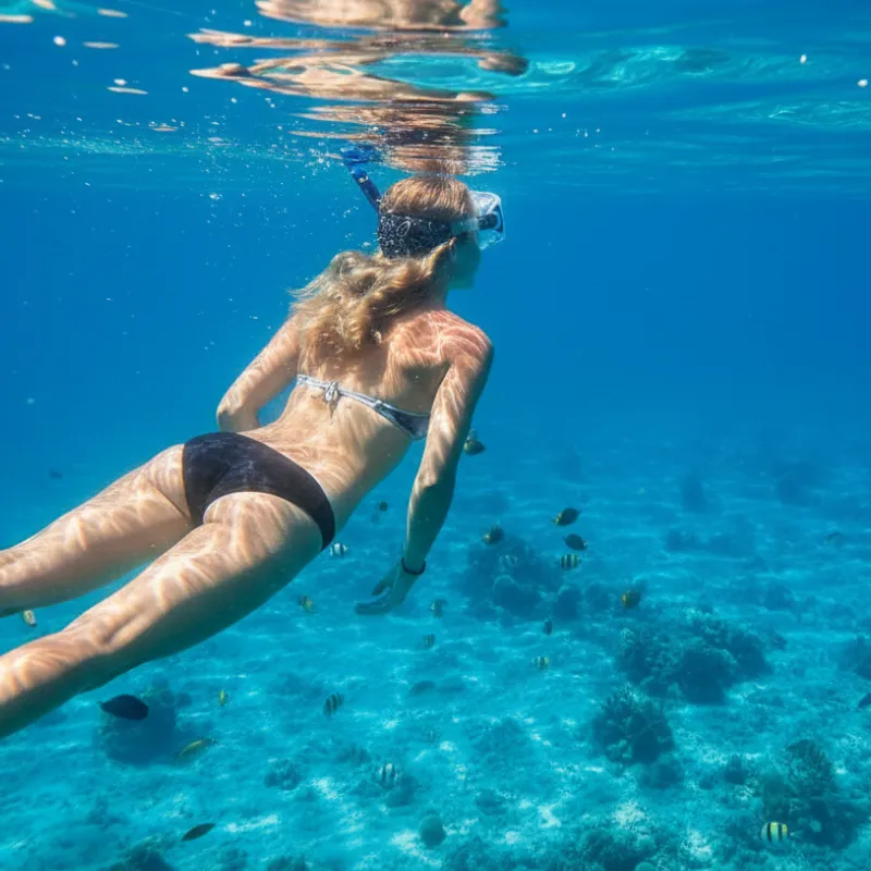 Det går meget hurtigere at gøre sig klar til snorkling. Stroppen glider aldrig af, og jeg spilder ikke tid på at ordne mit hår bagefter.