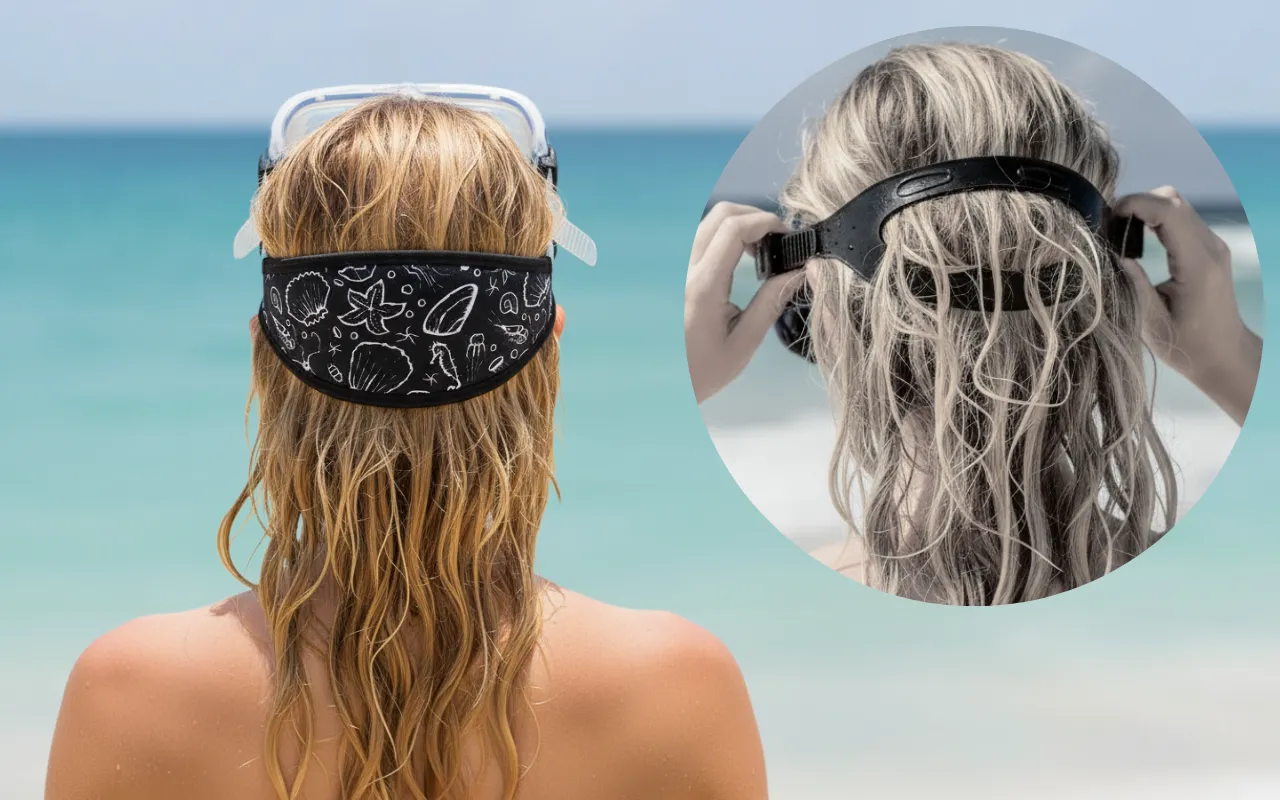 Det er meget mere behageligt at have min maske på nu, ikke mere at mit lange hår bliver trukket! Stroppen glider bare på og gør svømning sjov.
