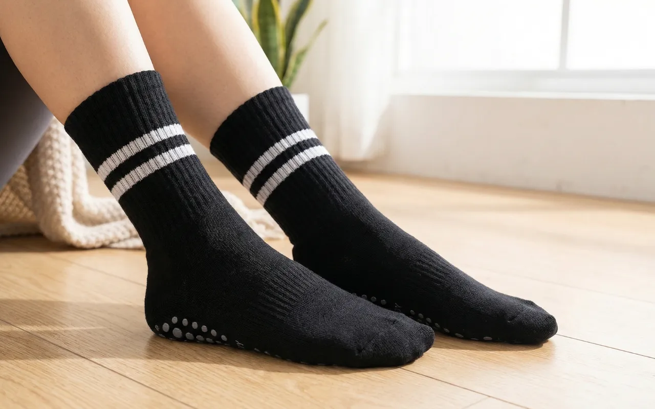 Jeg bruger dem hver gang jeg laver pilates eller bare går rundt i huset. Grebene føles virkelig sikre, selv på mine trægulve.
