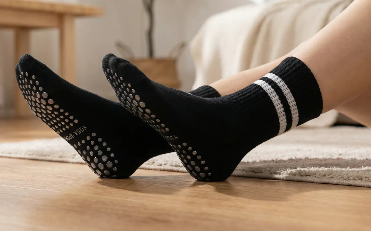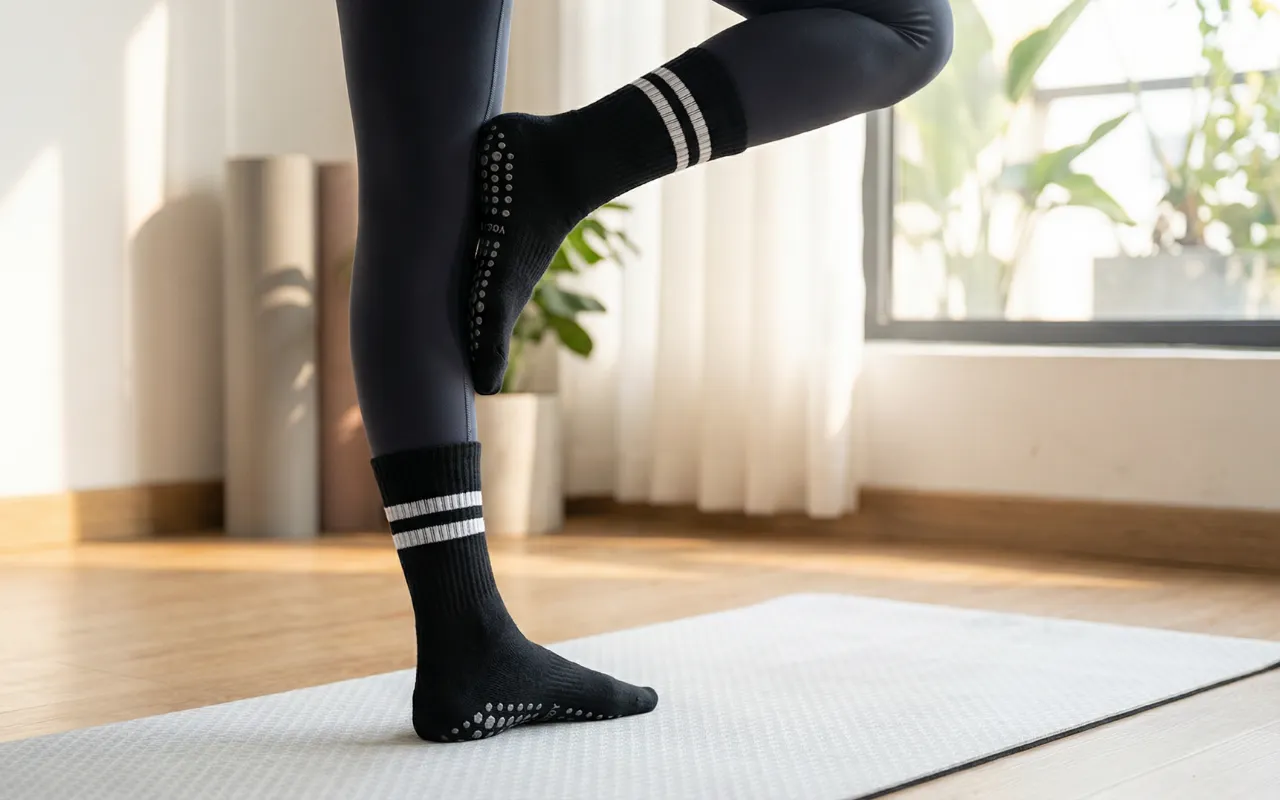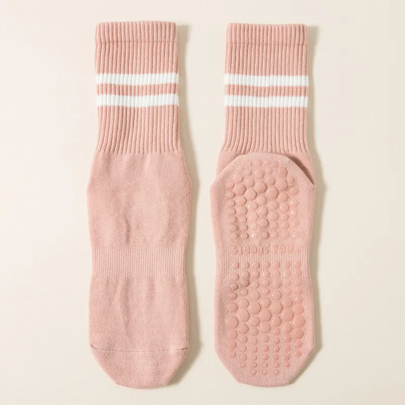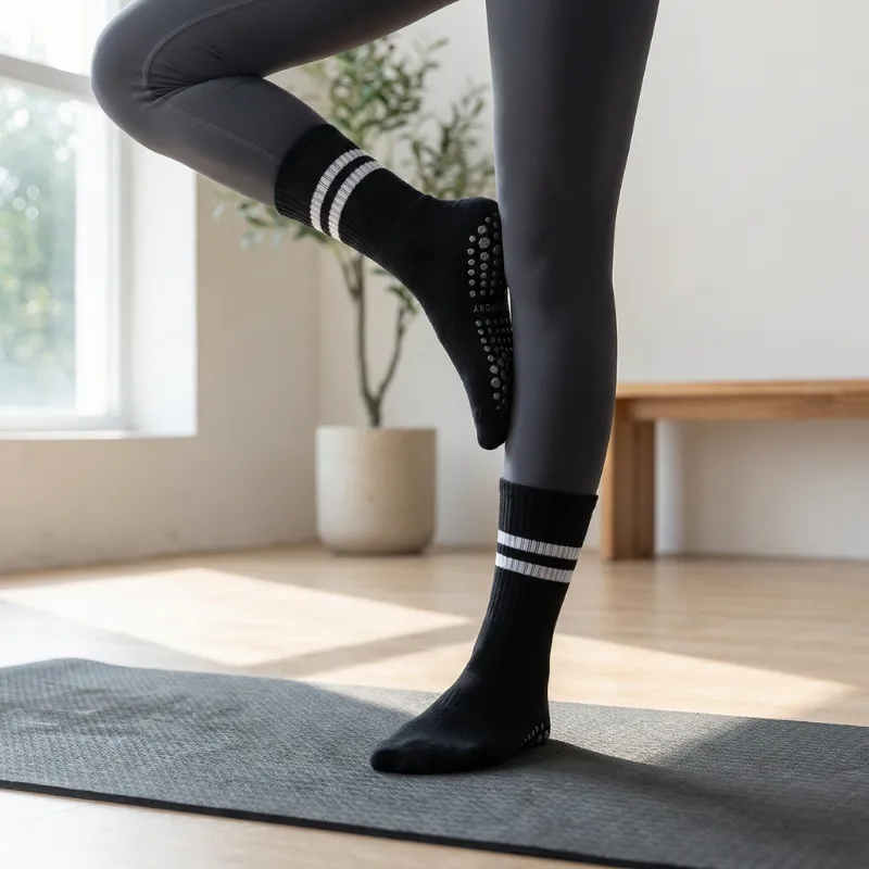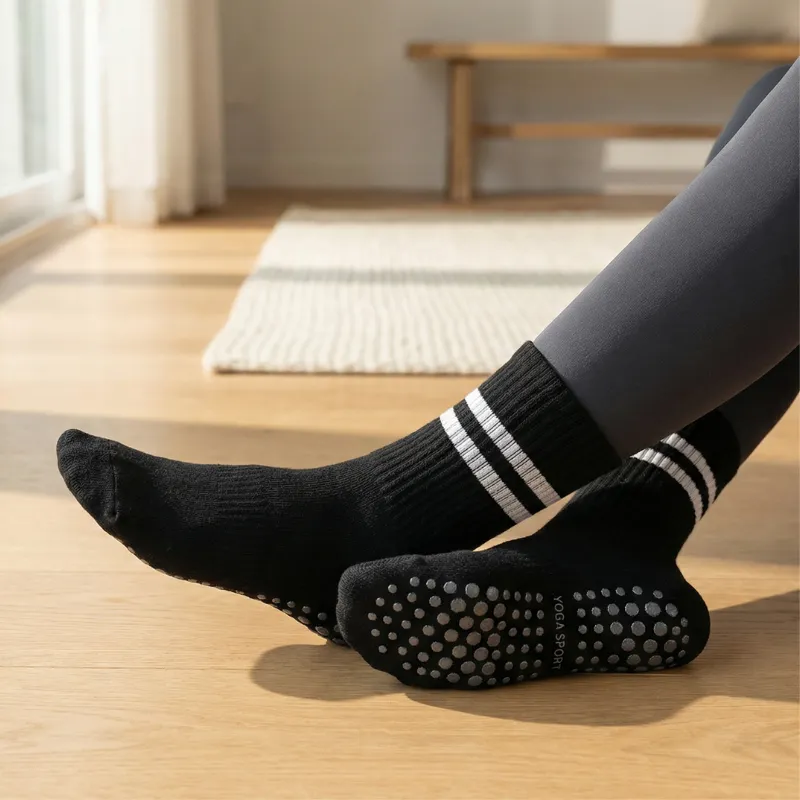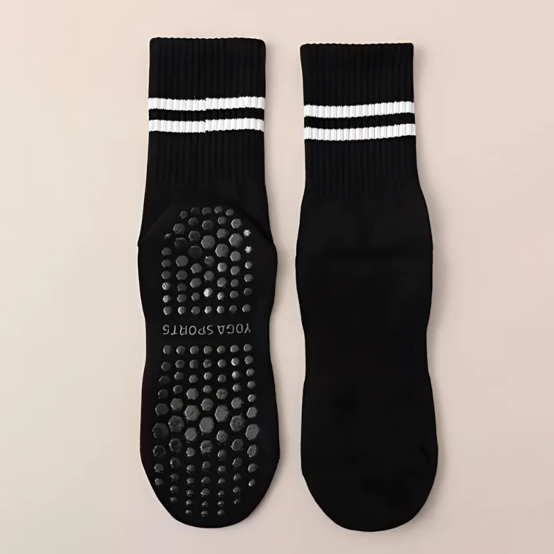 Silikonedutter dækker bunden for maksimal skridsikker støtte. Hvert skridt forbliver stabilt, uanset om du dyrker yoga eller pilates.