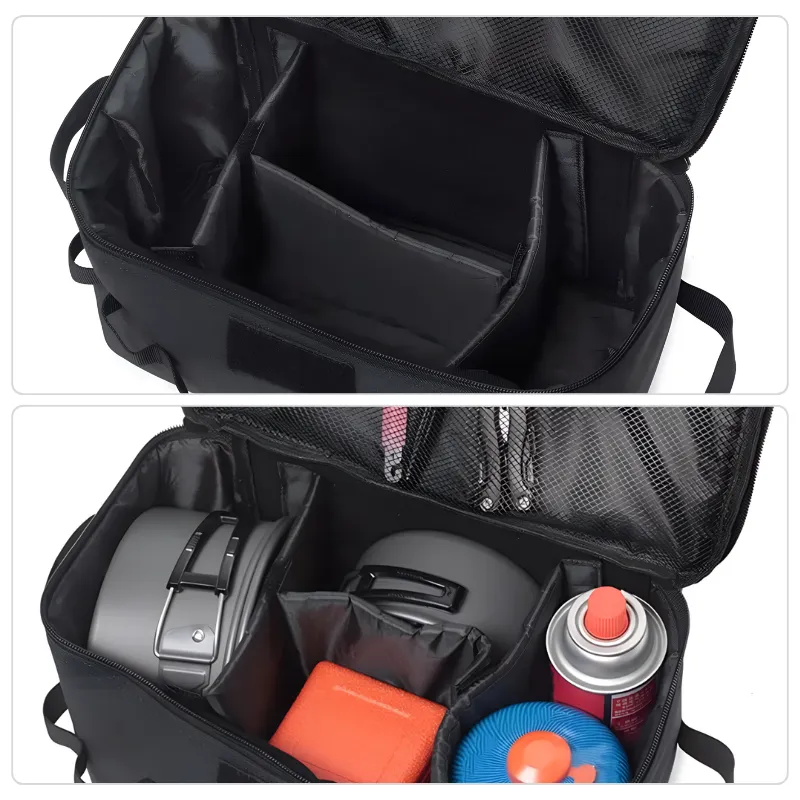 Jeg fik plads til gas, gryder, bestik og havde stadig plads til snacks. God til hurtig pakning og gør det stressfrit at slå lejr op.