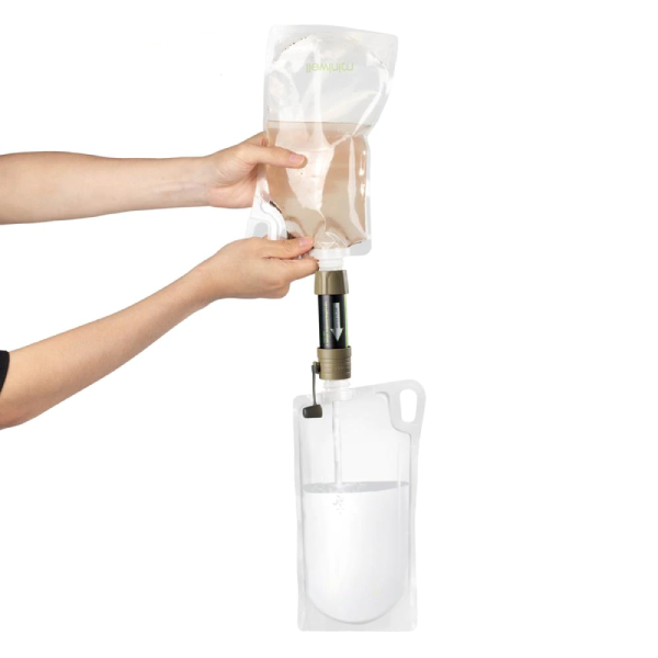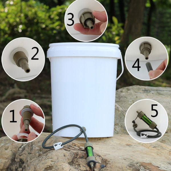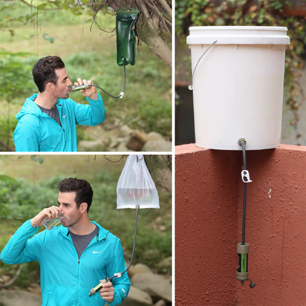 Klart vand kan nemt presses ud gennem dette vandfilter. Fremstillet med tyngdekraftsbaseret vandfiltrering har det en spandtilslutning og slange inkluderet til gør-det-selv filtreringssystemet. Dette personlige rensevandfilter filtrerer op til 2000 liter naturligt fornyeligt ferskvand uden brug af kemikalier. Du kan forlænge dets levetid ved at rense det med vand ved tilbageskylning. Tilbageskylning kan skylle urenheder væk, som membranen har filtreret fra vandet. Desuden kan du også drikke direkte fra en frisk vandkilde med dette filter. Der er en silikonepakning rundt om mundstykket.